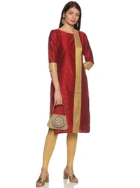 Cotton Silky Slub Jacquard & Rhinestone Work Maroon Kurti