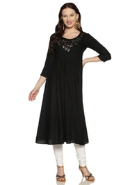 Rayon Neck Flower Design Rhinestone Work Black Colour Umbrella Cut Kurti