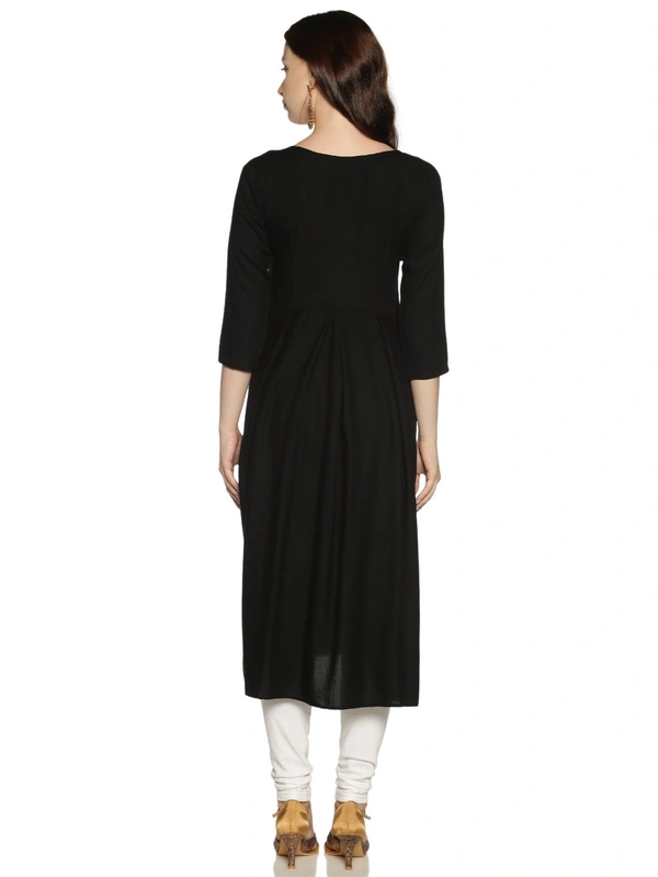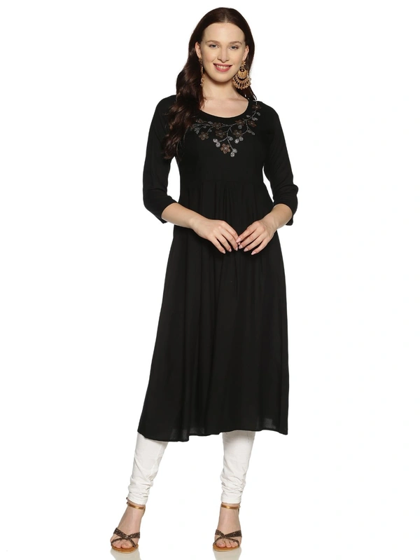 Rayon Neck Flower Design Rhinestone Work Black Colour Umbrella Cut Kurti