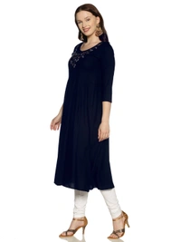 Rayon Neck Flower Design Rhinestone Work Blue Colour Umbrella Cut Kurti