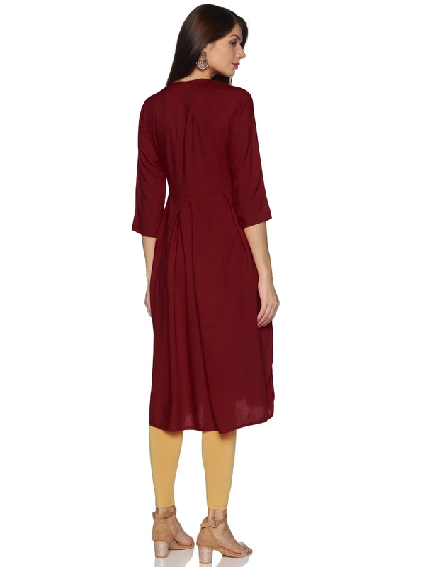Rayon Neck Flower Design Rhinestone Work Meroon Colour Umbrella Cut Kurti