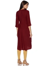 Rayon Neck Flower Design Rhinestone Work Meroon Colour Umbrella Cut Kurti