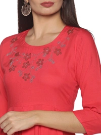 Rayon Neck Flower Design Rhinestone Work Pink Colour Umbrella Cut Kurti
