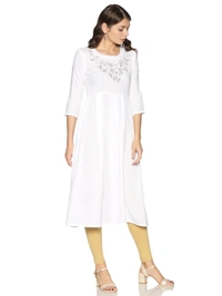 Rayon Neck Flower Design Rhinestone Work White Colour Umbrella Cut Kurti