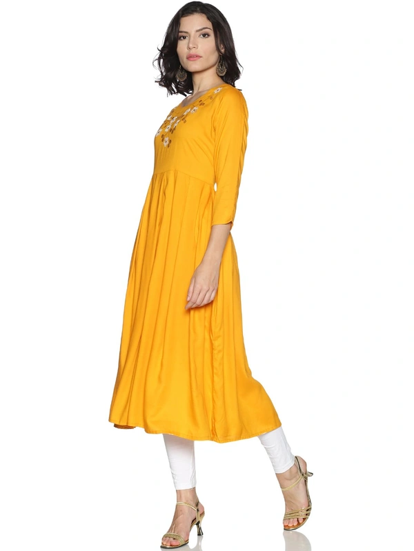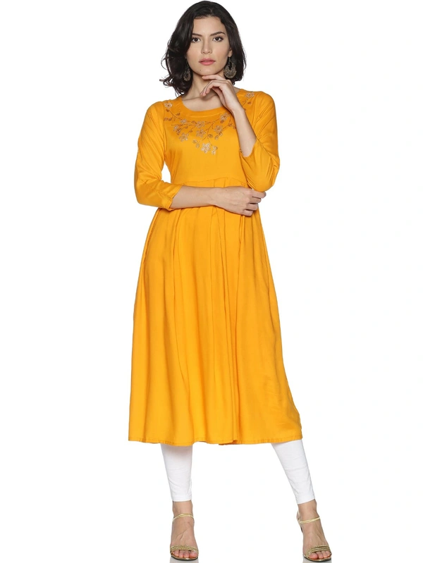 Rayon Neck Flower Design Rhinestone Work Yellow Colour Umbrella Cut Kurti