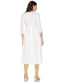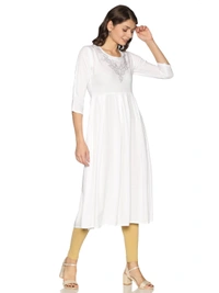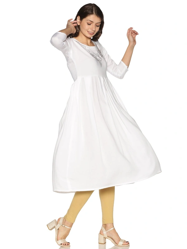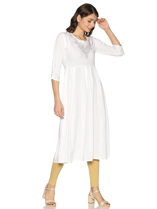 Rayon Neck Leafe Design Rhinestone Work White Colour Umbrella Cut Kurti