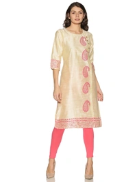 Silky Cotton Mango Printed Mily White Colour Kurti