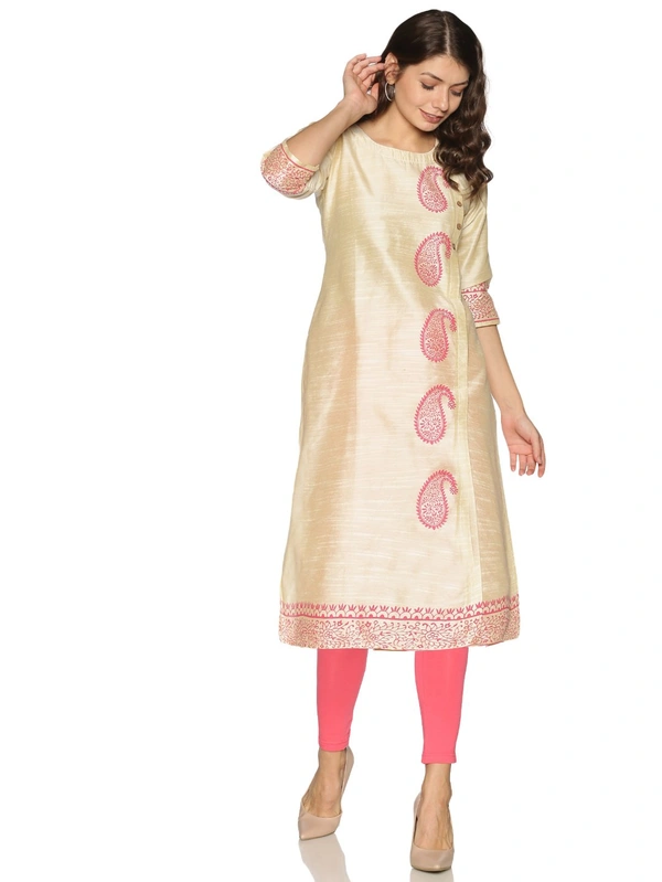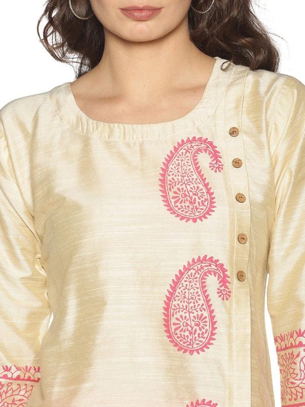 Silky Cotton Mango Printed Mily White Colour Kurti