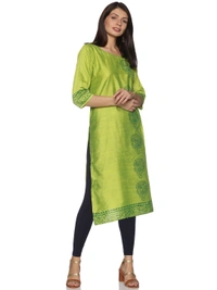•Style: Stright cut. Round neck design, Calf Length. Three-Fourth Sleeve